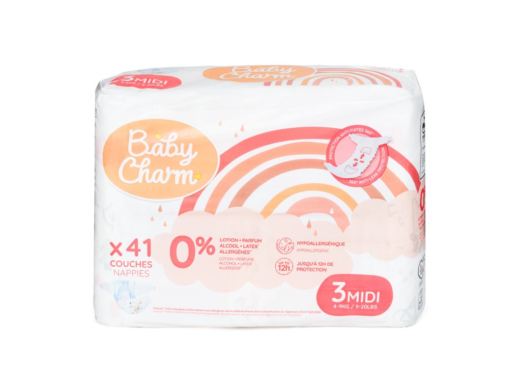 Plenky Baby Charm jsou vyrobeny ze speciálních jemných materiálů, které pomáhají předcházet opruzeninám a udržují pokožku suchou. Praktický indikátor vlhkosti vás spolehlivě upozorní, kdy je čas na přebalení.
