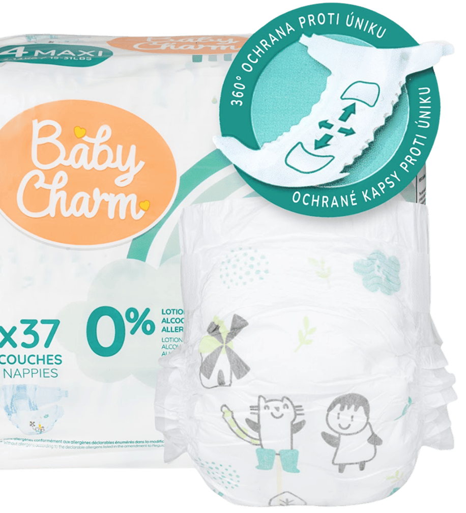 Baby Charm Premium Super Dry Flex vel. 4 Maxi, 7 – 14 kg, 37 ks