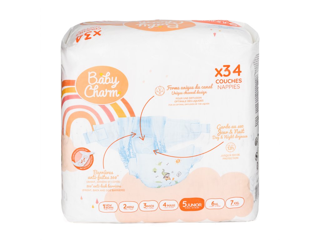 Baby Charm Super Dry Flex vel. 5 Junior, 11 - 16 kg, 34 ks