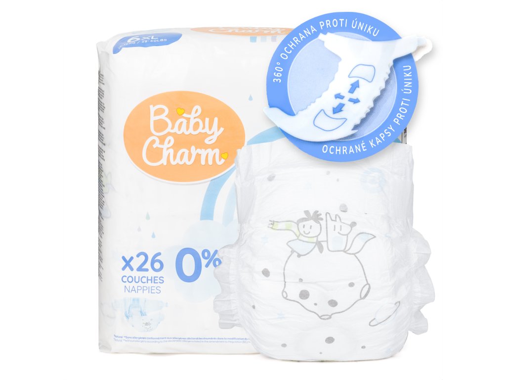 Baby Charm Premium Super Dry Flex vel. 6 XL, 13-18 kg, 26 ks