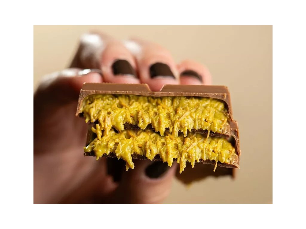 Dubajská čokoláda je trend, který pobláznil snad celý svět. Ta naše sice není přímo z Dubaje, ale snadno vás do téhle exotiky přenese. Vzali jsme totiž mléčnou čokoládu Mixit a naplnili ji až po okraje naším pistáciovým krémem s jemným křupavým kataifi.
